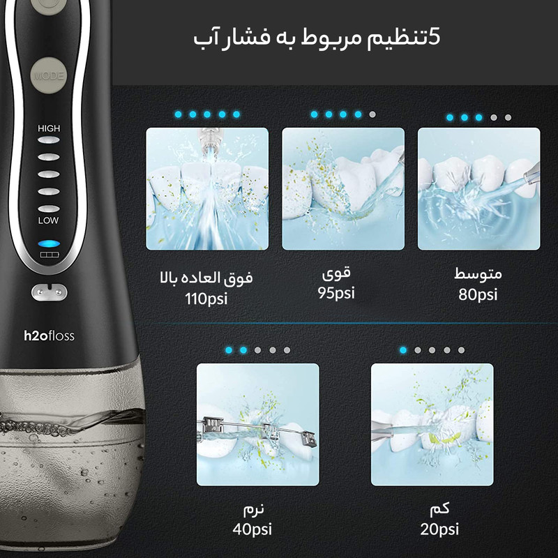 واتر جت دستگاهی است که با پاشیدن آب با فشار به دندان ها و لثه ها جرم های باقی مانده را از دهان خارج مي کند و نقاطی که به وسيله مسواک قابل تميز کردن نمی باشد را شستشو می دهد. دستگاه واتر جت h2oflossمدل HF-22 برای افرادی که دارای اورتودونسی، روکش، ايمپلنت، دندان مصنوعی و يا پروتزهای اورتودنسی می باشند و يا نخ کشيدن را سخت می دانند بسيار ایداه آل است. واترجت های دندانی میتوانند باکتری هایی که در اعماق لثه ها هستند را به بیرون رانده و از بین ببرند که این ویژگی در دستگاه های دیگر پاک کننده دندان و لثه ها دیده نمیشود. پس میتوان نتیجه گرفت که با خرید دستگاه h2oflossمدل HF-22در واقع چند دستگاه را همزمان تهیه کرده اید.
