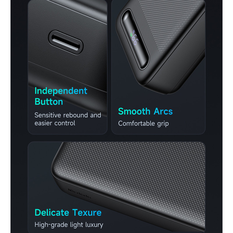 پاوربانک مک دودو 22.5W مدل MC-389 ظرفیت 20000 میلی آمپر ساعت با توان 22.5 وات دارای قابلیت فست شارژ آیفون و اندرویدی است و امکان شارژ 3 دستگاه همزمان را دارد.دارای 3 خروجی که 2 پورت USB و یک پورت تایپ سی که هم امکان شارژ خود پاوربانک را دارد و هم شارژ موبایل و تبلت.این پاوربانک از پروتکل های شارژ سریع PD/QC/SCP/FCP/AFC/VOOC/Apple را دارد و با انواع برندها سازگار است.زمان شارژ این پاوربانک با شارژر 25/33W تایپ سی PD و کابل تایپ سی توان بالا حدود 5.5 ساعت خواهد بود.طراحی بسیار شیک و مینیمال و لاکچری از ویژگی های این پاوربانک است.انتقال حرارت بسیار عالی و عدم تجمع حرارت نیز از خصوصیات MC-389 است.این پاوربانک با رنگهای سفید،سرمه ای و مشکی عرضه شده که با کدهای MC-3890/MC-3891/MC-3892 تفکیک می گردند.پاوربانک داراي تراشهای هوشمندی است که با 9 قابلیت محافظتی ، محافظت کامل از دستگاه در برابر اتصال کوتاه ، نوسانات آمپر و ولتاژ و نوسان حرارت بعهده داشته و میزان جریان و ولتاژ لازم برای هر دستگاه را بصورت اتومات و سريع تشخيص میدهد.دارای صفحه دیجیتال نشانگر درصد شارژ پاوربانک است.