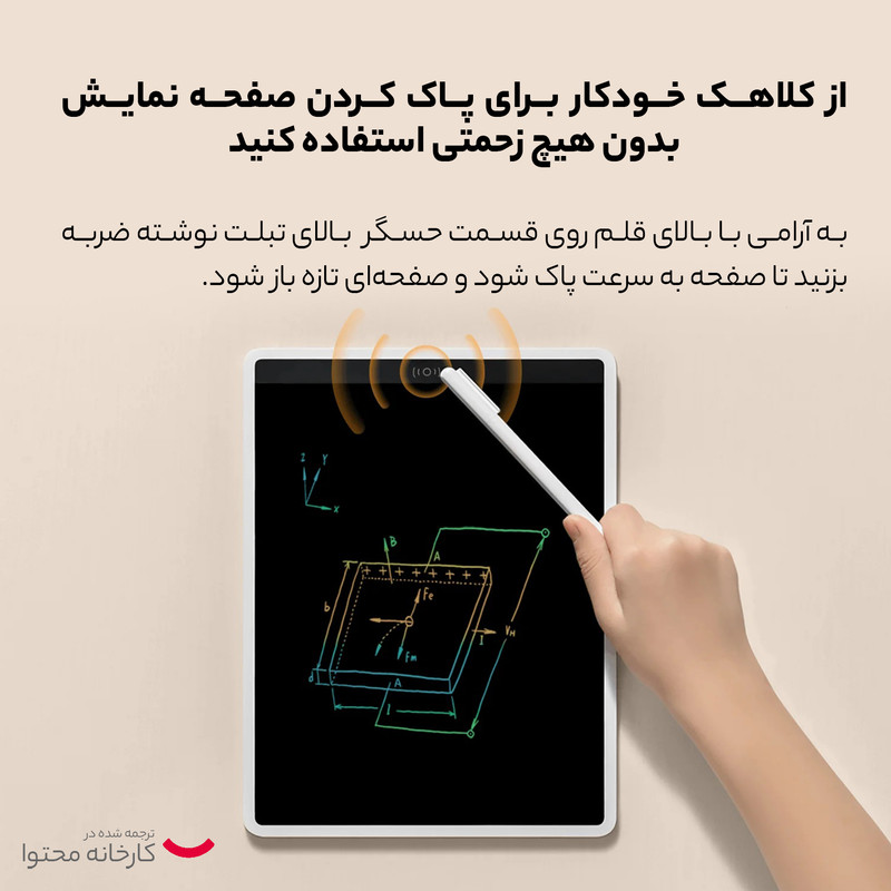 نحوه کار کاغذ دیجیتالی میجیا مدل MJXHB01WC بسیار ساده است. با قلم طراحی و نوشتن را انجام داده و برای پاک کردن کافیست سنسور بالای صفحه با انتهای قلم لمس کنید.